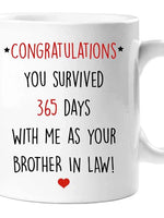 1st Anniversary Mug Congratulations You Survived 365 Days With Me As Your Brother In Law First Anniversary Gift Present Novelty