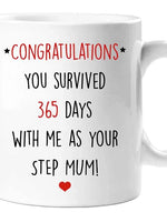 1st Anniversary Mug Congratulations You Survived 365 Days With Me As Your Step Mum First Anniversary Gift Present Daughter Novelty