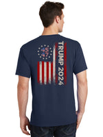 Show your support for former President Trump with this bold and patriotic {product}. Featuring a unique design of the American flag on both the front and back, this {product} is perfect for any Trump supporter looking ahead to the 2024 election. Stand out from the crowd and make a statement with this eye-catching {product} that proudly displays your allegiance. Whether you are attending a rally, protest, or simply showing your pride on a daily basis, this {product} is sure to turn heads. Get yours today and let your voice be heard in style!