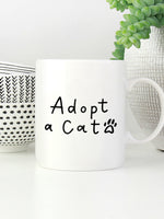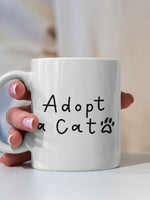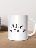 Adopt a Cat printed on the front of this White Ceramic Coffee Mug.