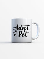 Adopt A Pet printed on the front of this White Ceramic Coffee Mug.