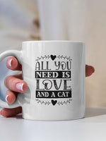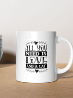 All You Need Is Love And a Cat With Stars printed on the front of this White Ceramic Coffee Mug.