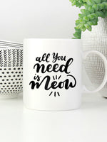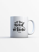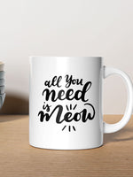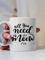 All You Need Is Meow With Paws printed on the front of this White Ceramic Coffee Mug.