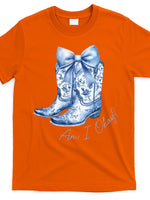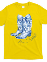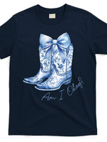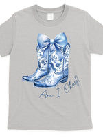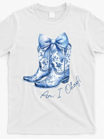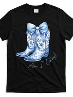 - Am I Okay Boot Cowgirl Coquette Bow T-Shirt