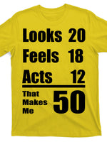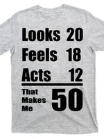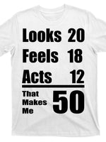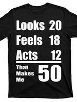 Looks 20, Feels 18, and Acts 12 that makes me 50 is the perfect birthday gift for anyone turning fifty years old.