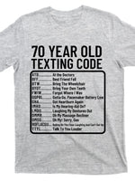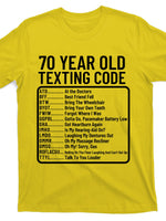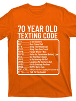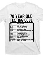 - Funny 70 Year Old Texting Code Birthday T-Shirt