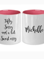 Personalized name coffee mug Fifty sassy and a bit smart assy Custom name mug Custom 50th Birthday Gift funny gag gift for her
