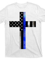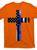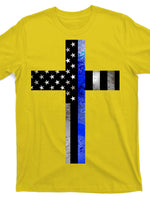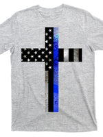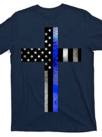 - A Christian cross showing support for law enforcement - Thin Blue Line T-Shirt