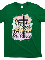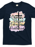 - Chosen Blessed Forgiven Redeemed Christian Cross Jesus Cute T-Shirt