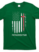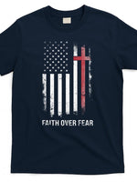 - Christian Us Usa Flag American Christ Faith Over Fear Cross T-Shirt