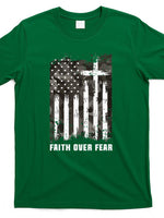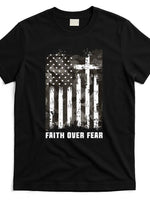 - Faith Over Fear Christian Cross Camouflage American Flag T-Shirt