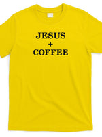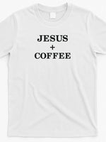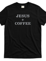- Jesus + Coffee Plus Christian Faith Love Of God And Caffeine Embroidered Embroidered T-Shirt