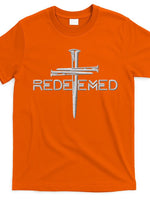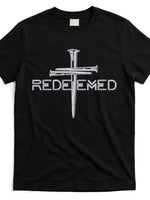 - Redeemed 3 Nails Cross By Jesus Christ Christian Faith Embroidered Embroidered T-Shirt