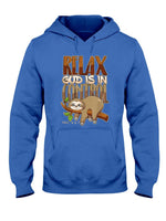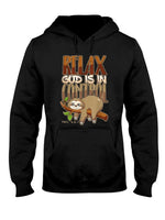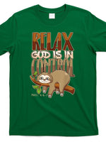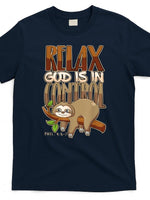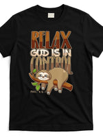 - Relax God Is In Control Christian Bible Quote Sloth T-Shirt