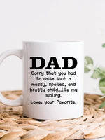 Dad Mug Father39s Day Gift From Your Favorite Funny Dad Gift Father Gift Dad Coffee Mug Sorry About My Sibling Funny Brother Sister