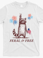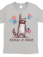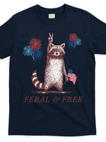 - Feral & Free Funny Patriotic Racoon 4th July T-Shirt
