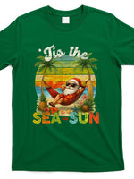 - Tis The Sea-Sun Funny Christmas In July Hawaii Santa Beach T-Shirt