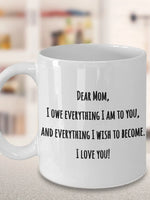 Gift for Mom Gift for mother Mothers Day mug Dear Mom I owe you everything I am for mom gift from daughter from son coffee mug
