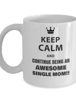 Gift for Mom Single Mom Mug Mothers Day gift Keep Calm and continue being an Awesome Single Mom Inspirational Awesome mom ceramic mug
