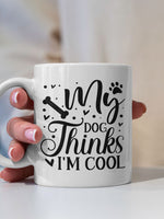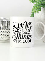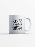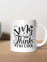 My Dog Thinks I_m Cool printed on the front of this White Ceramic Coffee Mug.