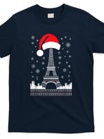 Eiffel Tower Santa Hat - Funny Vintage Paris Ugly Christmas T-Shirt