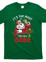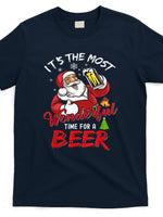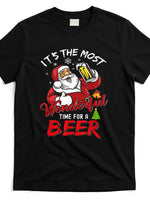 Funny Christmas Santa Claus Drinking Beer Wonderful Time T-Shirt