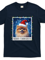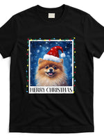 Merry Christmas Pomeranian Santa Hat Xmas Dog Lights Family Men Women Kids T-Shirt