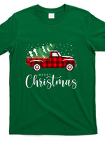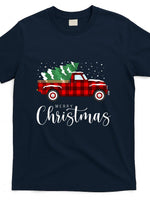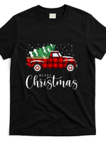 Merry Christmas Red Truck Buffalo Plaid Xmas Retro Vintage T-Shirt
