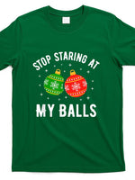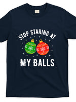 Stop Staring At My Balls Funny Dirty Christmas Adult Humor T-Shirt
