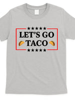 Grab your Let's Go Taco Trump {product} and showcase your fun political style. Perfect for rallies, gatherings, or casual outings, this {product} combines humor and patriotism. Embrace the taco theme and make a statement at any event. Stand out in the crowd while supporting your favorite political figure. This whimsical {product} is a great conversation starter and brings a lighthearted touch to serious discussions.
