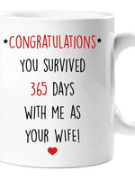 1st Anniversary Mug Congratulations You Survived 365 Days With Me As Your Wife First Anniversary Gift Present Husband Novelty Funny