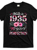 - 90 Year Old Made In 1935 Floral 90th Birthday Women T-Shirt