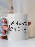 Adopt A Dog printed on the front of this White Ceramic Coffee Mug.