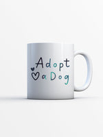 Adopt A Dog with Green Galaxy font printed on the front of this White Ceramic Coffee Mug.