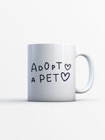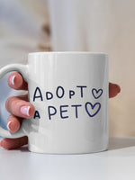 Adopt A Pet with Green Galaxy font printed on the front of this White Ceramic Coffee Mug.