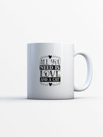 All You Need Is Love And a Cat With Stars printed on the front of this White Ceramic Coffee Mug.