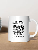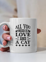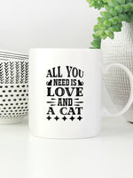 All You Need Is Love printed on the front of this White Ceramic Coffee Mug.