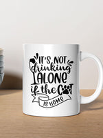 alone if the cat printed on the front of this White Ceramic Coffee Mug.