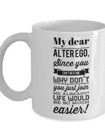 Alter Ego Mug My dear alter ego since you cant beat me why dont you just join me already Sarcastic ceramic travel mug