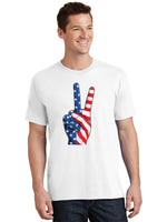 - American Flag Peace Sign Hand 4th Of July T-Shirt