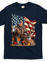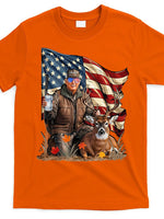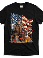 - Donald Trump Maga Deer Hunting Parotic American Flag T-Shirt
