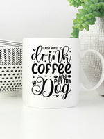 Drink Coffee And Pet My Dog printed on the front of this White Ceramic Coffee Mug.