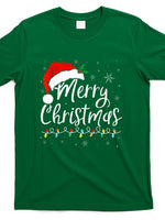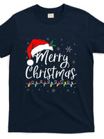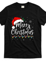 - Merry Christmas Lights Santa Hat Xmas Family Matching Pajama T-Shirt