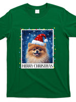 - Merry Christmas Pomeranian Santa Hat Xmas Dog Lights Family Men Women Kids T-Shirt