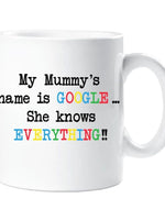 Novelty Mothers Day Mug Gift My Mummy's Name is Google She Knows Everything Gift For Her Funny Present Birthday Anniversary