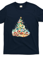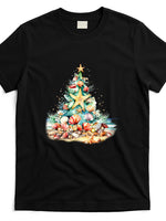 - SeaShells Christmas Tree Ocean Water Starfish Beach Xmas T-Shirt