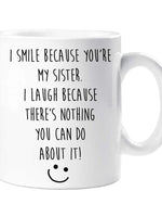Sister Mug I Smile Because you're My Sister I Laugh Because There Is Nothing You Can Do About It Present Gift
