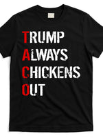 Show off your sense of humor with the Taco Trump Always Chickens Out {product}. Perfect for casual outings or political events, this {product} sparks conversation and laughter. Great for taco lovers and political enthusiasts alike, it’s a fun addition to your collection. Wear it proudly to express your views and spread some laughs.