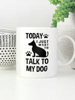 Today I Just Want To Talk To My Dog printed on the front of this White Ceramic Coffee Mug.